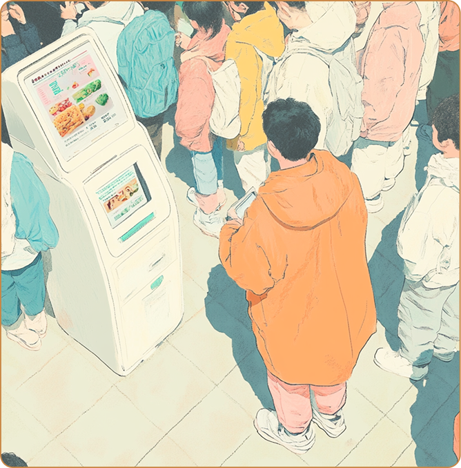 Agilizar el flujo con una pantalla táctil donde los clientes hacen y pagan su pedido sin fila.
